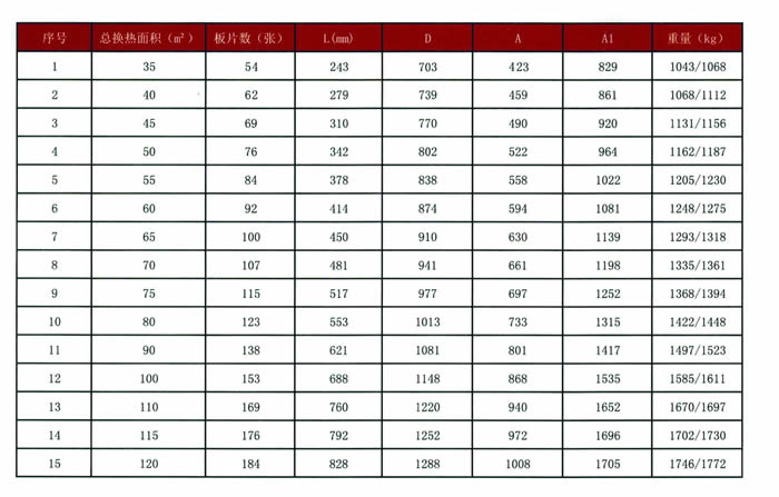 單片換熱面積:0.65㎡